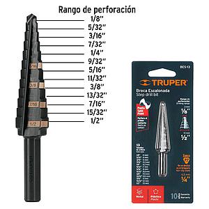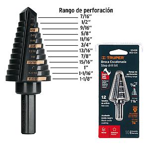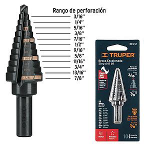 BROCA ESCALONADA MULTIUSO HSS 3/16 PULG - 7/8 PULG TRUPER 12125